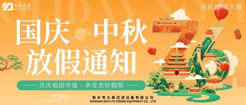 尊敬的客戶及合作伙伴:秋風送爽,丹桂飄香。值此國慶與中秋雙節(jié)來臨之際,謹向您及家人致以zui誠摯的節(jié)日祝福!根據國家法定節(jié)假日安排,結合公司實際情況,現將2025年國慶+中秋雙節(jié)放假安排及相關事項通知如下:一、放假時間2025年10月1日(星期三)至10月6日(星期一),共計6天。10月7日(星期二)起正常上班。9月28日(周日)、10月12日(周日)補班。二、業(yè)務服務說明放假期間,公司線上咨詢通道保持暢通。銷售人員將不定期查看并回復您的咨詢,但受假期影響,可能存在回復延遲的情況,敬請諒解。如遇緊急事項,您可撥打以下熱線:王經理13613905650;李經理13839073363,我們將竭誠為您服務。三、生產安排提醒因車間節(jié)前生產訂單已排滿,為確保假期前后生產質量與效率,放假期間(10月1日至10月6日)將暫停安排新生產訂單生產。節(jié)前已下單的訂單將按原計劃正常推進,放假期間新接訂單將統一順延至10月7日復工后,按序安排生產。由此帶來的不便,我們深表歉意,感謝您的理解與支持。四、溫馨提示假期出行請注意安全,做好個人防護。公司官網及社交媒體平臺將持續(xù)更新節(jié)日動態(tài)及服務資訊,歡迎隨時關注。佳節(jié)共團圓,服務不間斷。值此雙節(jié)同慶的美好時刻,衷心感謝您長期以來對我司的信任與支持!我們期待在節(jié)后以更飽滿的熱情、更優(yōu).質的服務與您攜手同行,共啟新程!此致敬禮!新鄉市大禹過濾設備有限公司2025年9月28日